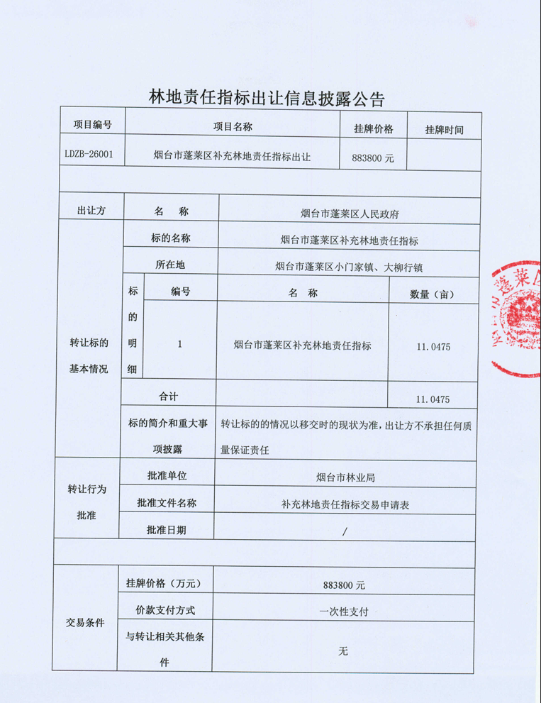 煙臺市蓬萊區(qū)林地責(zé)任指標(biāo)出讓(LDZB-26002)