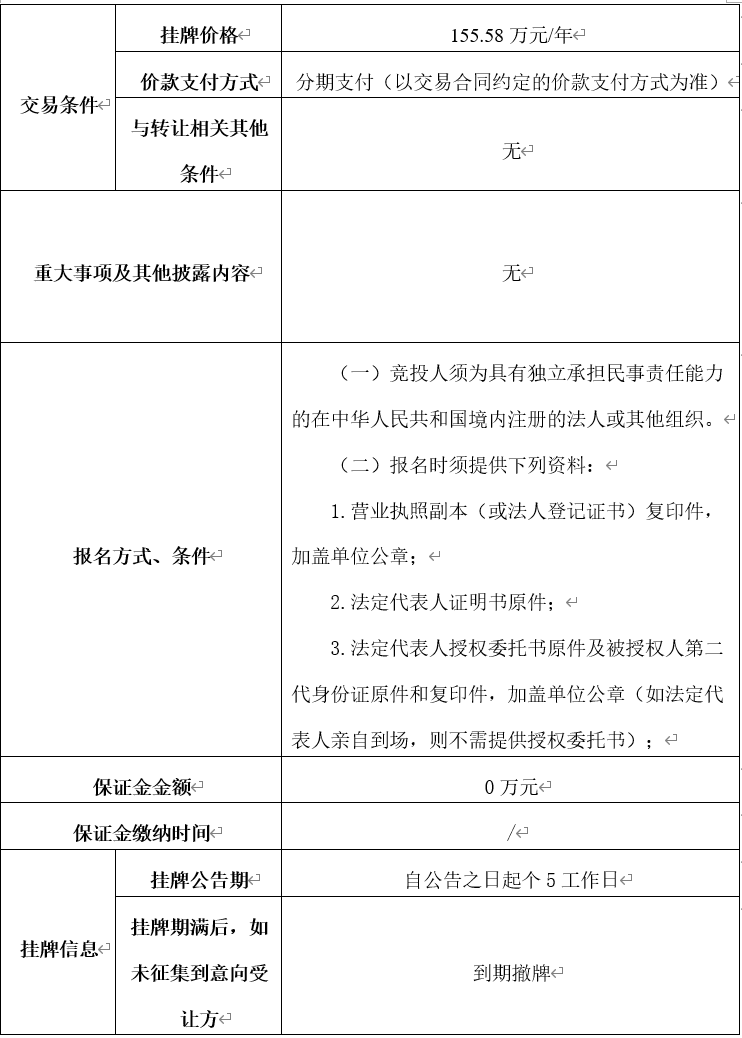 轉(zhuǎn)讓底價(jià): 155.58萬元/年