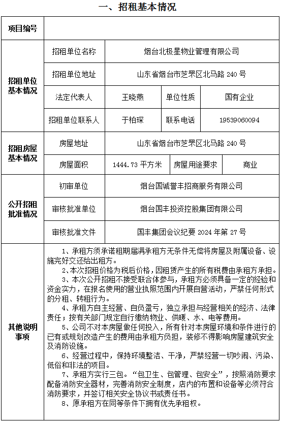 煙臺市南大街267號一樓東側(cè)門頭房招租公告