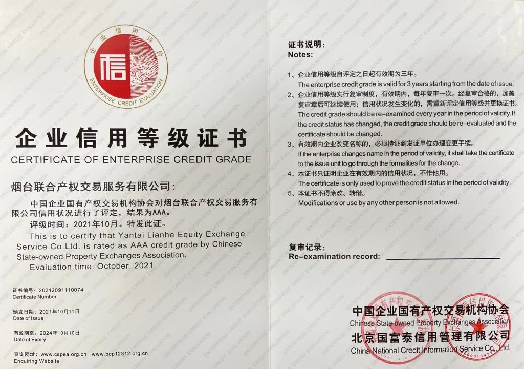 中國產(chǎn)權(quán)交易行業(yè)信用評價復(fù)審工作是由中國企業(yè)國有產(chǎn)權(quán)交易機(jī)構(gòu)協(xié)會牽頭,協(xié)同獨立第三方評價機(jī)構(gòu),對參評對象的基礎(chǔ)能力、財務(wù)指標(biāo)、管理能力、市場能力、社會責(zé)任等方面進(jìn)行綜合評估,最終經(jīng)產(chǎn)權(quán)交易行業(yè)信用評價專家委員會予以認(rèn)定后評定。本次在全國范圍內(nèi)共評選出38家AAA級信用企業(yè),其中山東省共有3家獲此殊榮,煙臺聯(lián)合產(chǎn)權(quán)是我市唯一一家獲評的企業(yè)。這既是對煙臺聯(lián)合產(chǎn)權(quán)綜合能力的認(rèn)可,也對公司進(jìn)一步提升服務(wù)能力、促進(jìn)公共資源有序流轉(zhuǎn)提出更高要求。