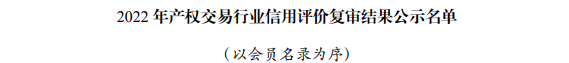 2022年產(chǎn)權(quán)交易行業(yè)信用評價復(fù)審結(jié)果在全國行業(yè)信用公共服務(wù)平臺和中國產(chǎn)權(quán)網(wǎng)進(jìn)行公示,煙臺聯(lián)合產(chǎn)權(quán)在協(xié)會信用評價復(fù)審中,繼續(xù)維持AAA級評定不變。